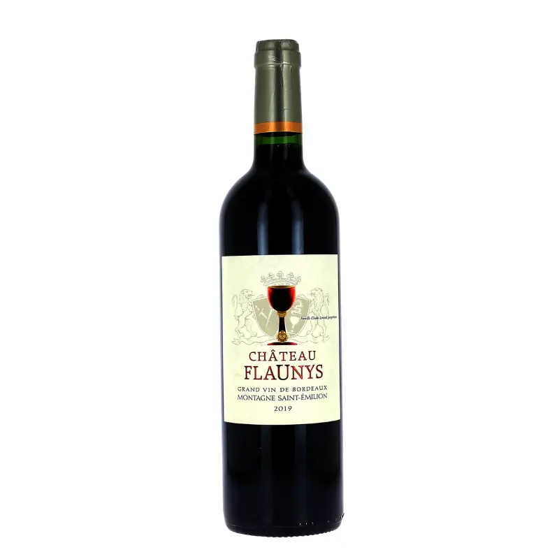 d’or caractérisant l’étiquette du Château FLAUNYS.
